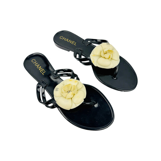 Chanel Women's Camellia Back Thong Slippers (Size 37)