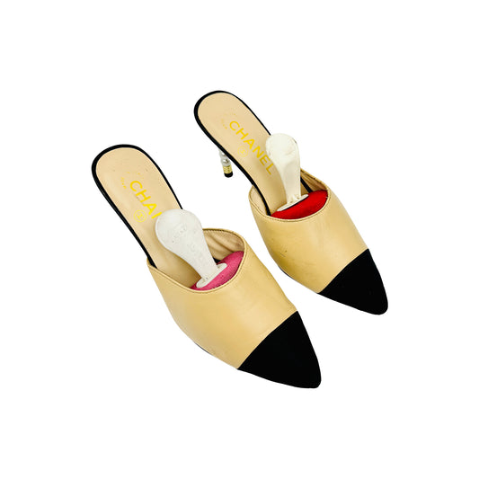Chanel Women's 'Beige Black' Heel Mules (Size 37)