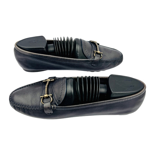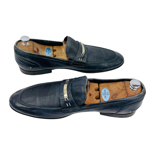 LA Martina Men's Navy Blue Leather Loafers (Size 44.5/45)
