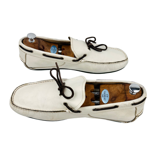 Salvatore Ferragamo Men's White Leather Loafers (Size 46/46.5)