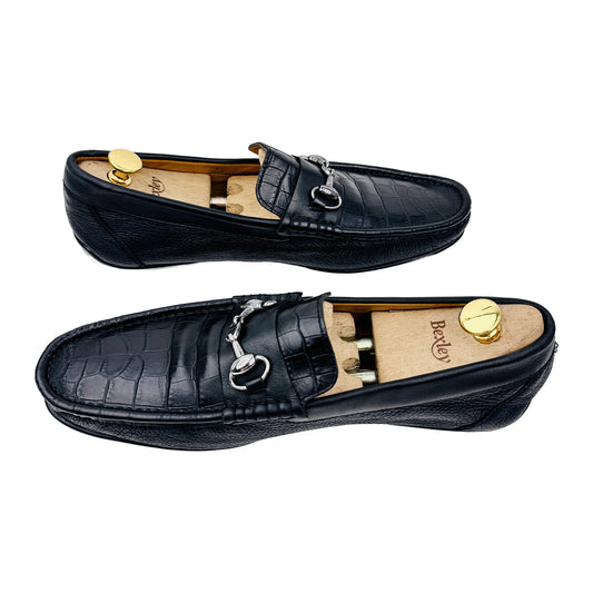 Blu Barrett Men's Black Crocodile Leather Loafers (Size 44/44.5)