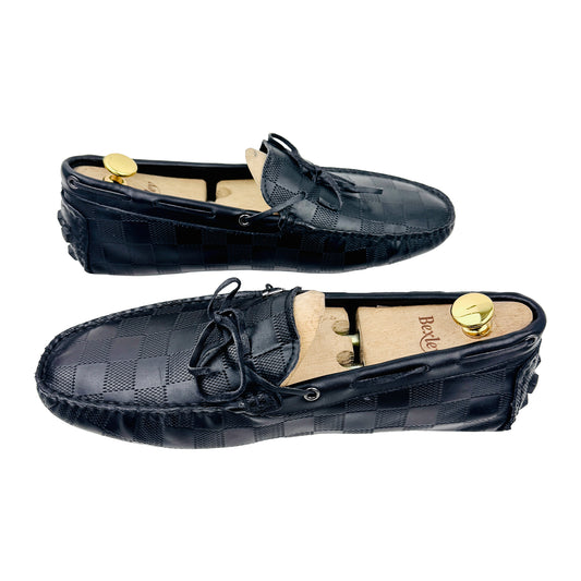 Louis Vuitton Damier Embossed Bow Black Loafers (Size 43)
