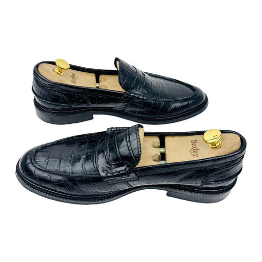 Vinny's Townee Croc-Effect Penny Black Loafers (Size 44)