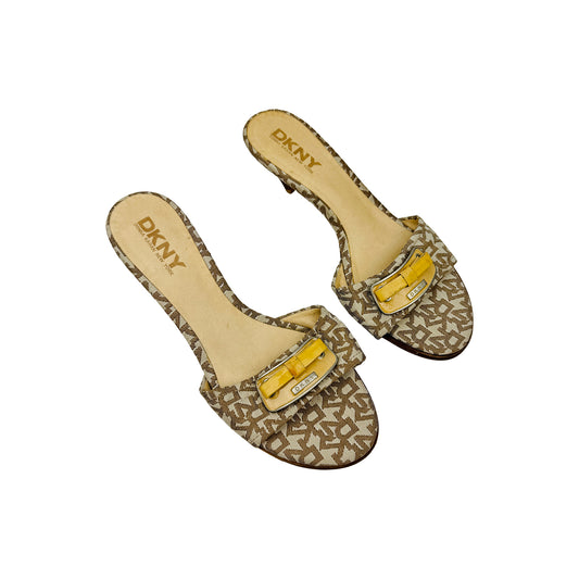 DKNY Women's Yellow Patent Leather Heel Sandals (Size 39)