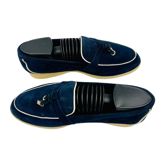 Loro Piana Summer Charms Walk Navy Loafers (Size 45) - H18068