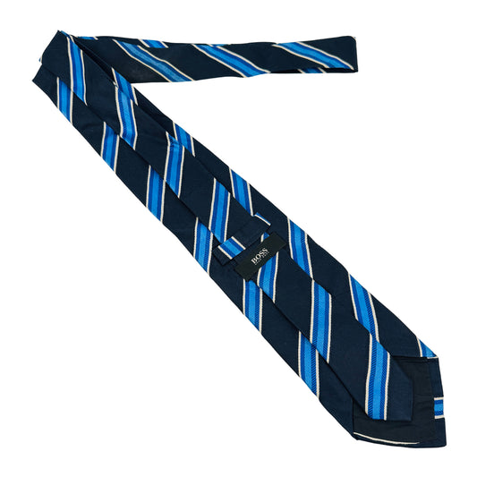 Hugo Boss Navy Blue 'Stripes' Silk Tie (Size Regular)