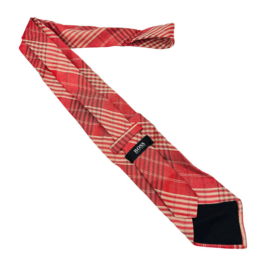 Hugo Boss Red 'Plaid Check Pattern' Tie (Size Regular)