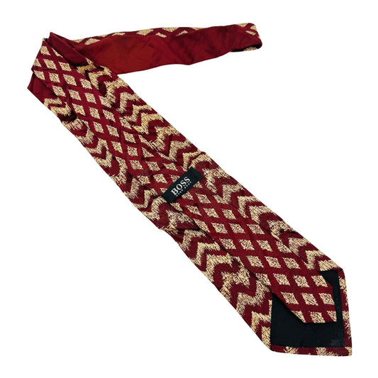 Hugo Boss Deep Red 'Zigzag Pattern' Silk Tie (Size Regular)