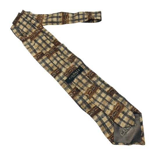 Canali Beige 'Plaid Pattern' Silk Tie (Size Regular)