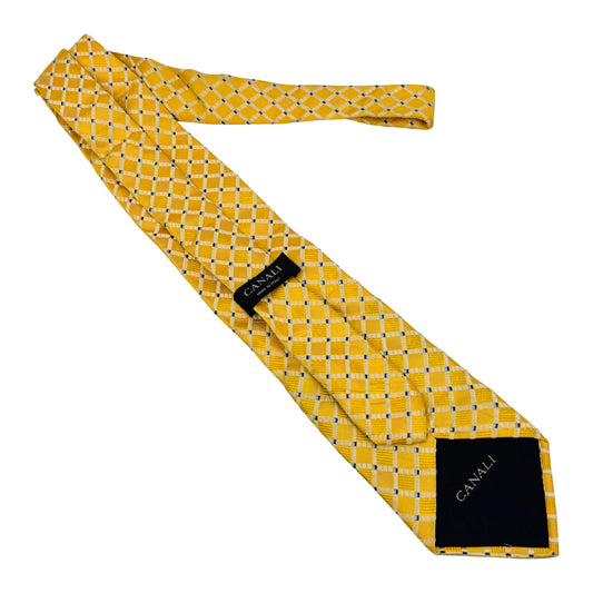 Canali Yellow 'Check Pattern' Silk Tie (Size Regular)