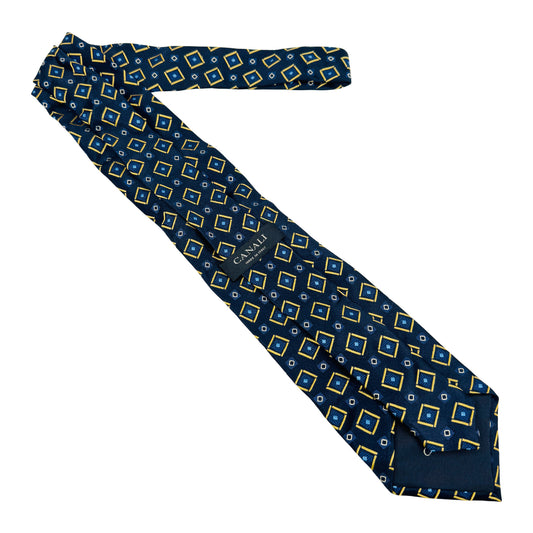 Canali Navy Blue 'Geometric Pattern' Silk Tie (Size Regular)