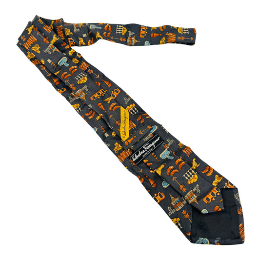 Salvatore Ferragamo Dark Grey 'Novelty Pattern' Tie (Size Regular)