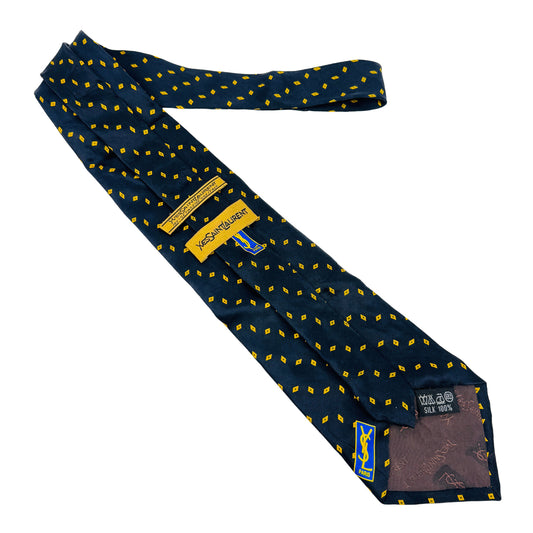 Yves Saint Laurent Dark Navy 'Geometric Motifs' Tie (Size Regular)