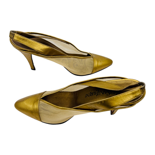 Yves Saint Laurent Vintage Gold Mesh Slingback Pumps (Size 38)