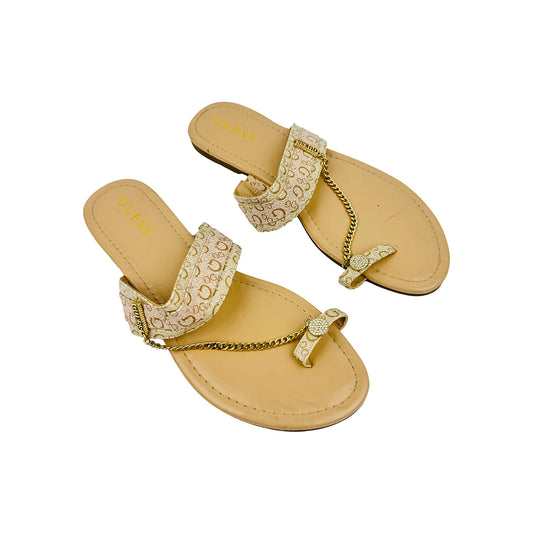 Guess Women's Beige Off-White Chain Sandal Slippers (Size 41)