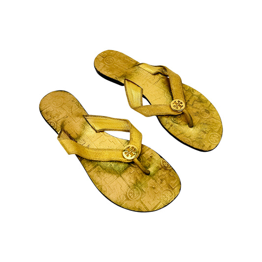 Tory Burch Thora 'Metallic Gold' Flip Flops (Size 38)