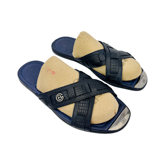 Baldinini Crossover Strap Black Leather Slippers (Size 43.5/44)