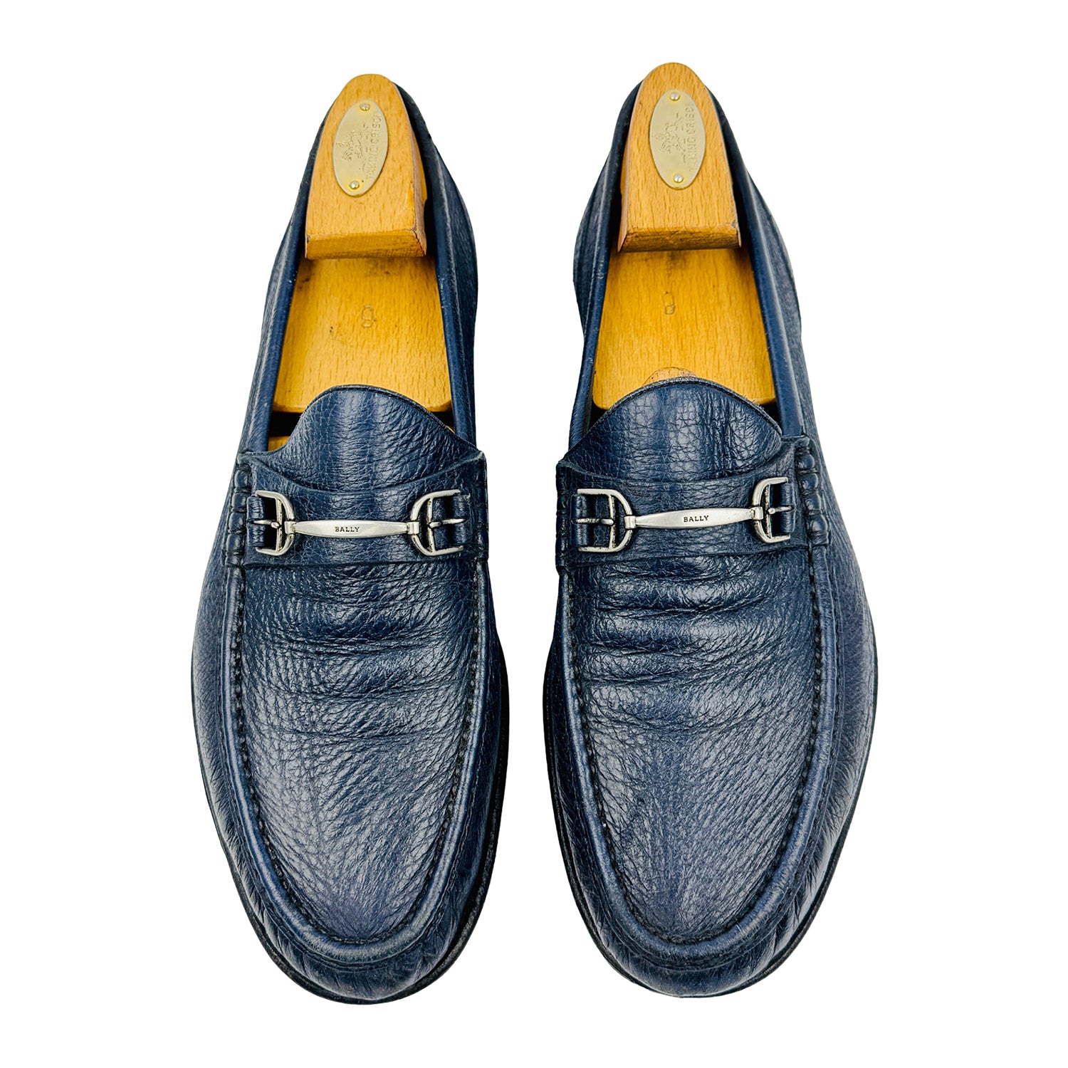 Bally Men's Blue Pebbled Leather Swiss Made Loafers (Size 42)