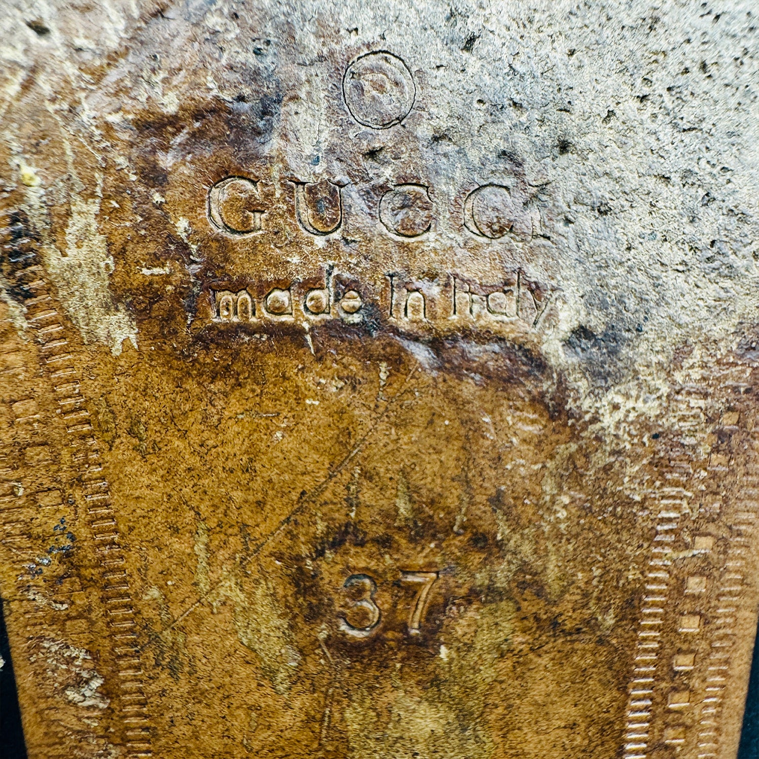 - Material: Leather, Rubber, Metal (Gold-Tone Horsebit)