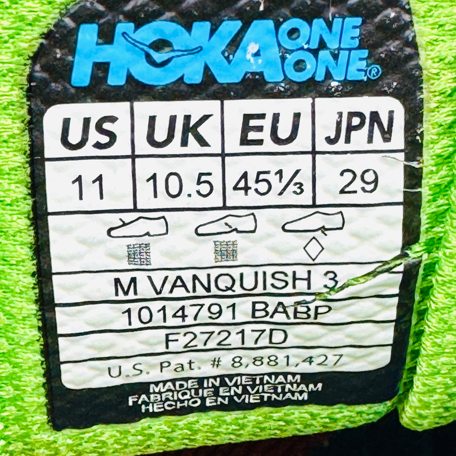 Hoka Men's Vanquish 3 Shoes (Size 45.5) - 1014791 BABP