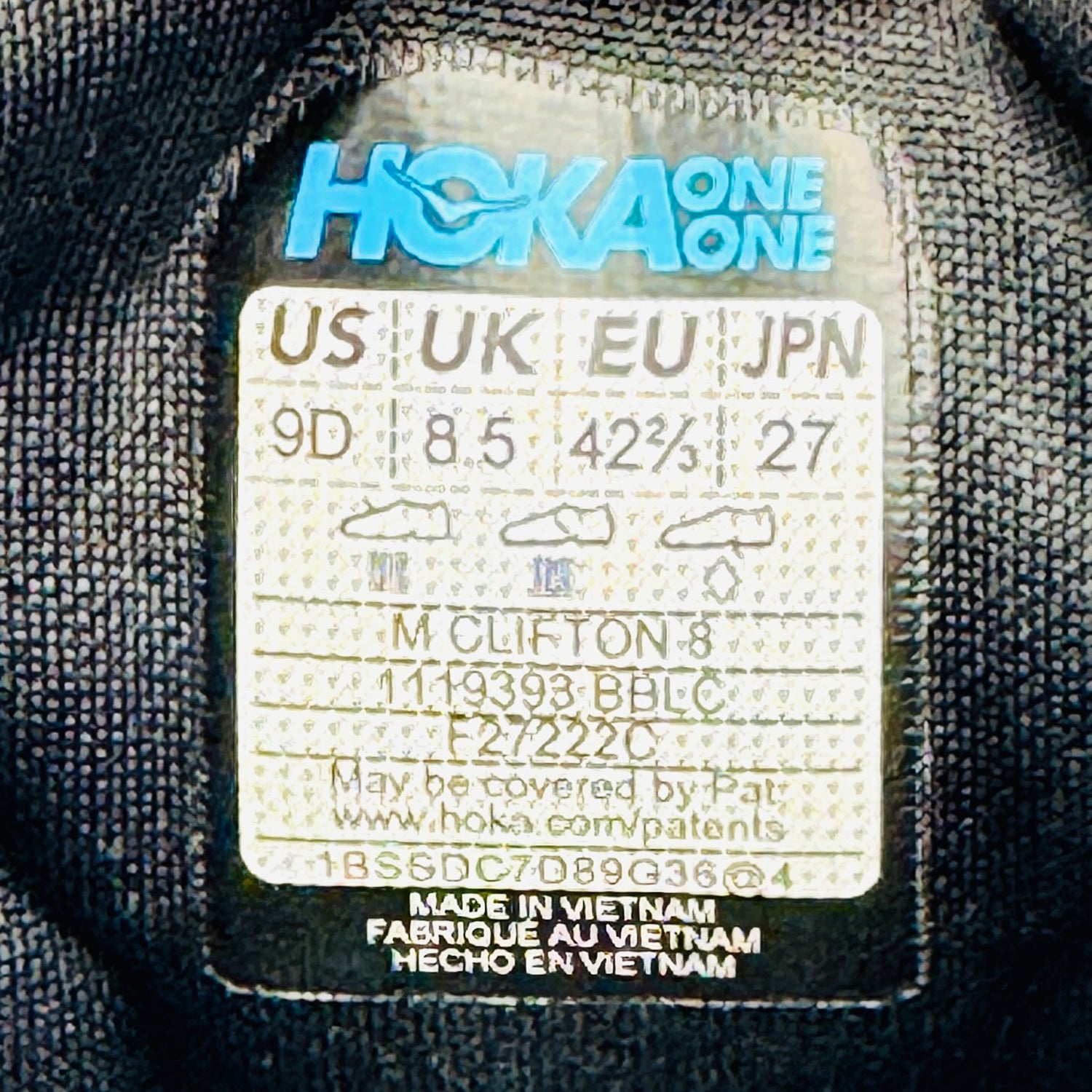 Hoka One One Clifton 8 Black Shoes (Size 42/42.5) - 1119393‑BBLC