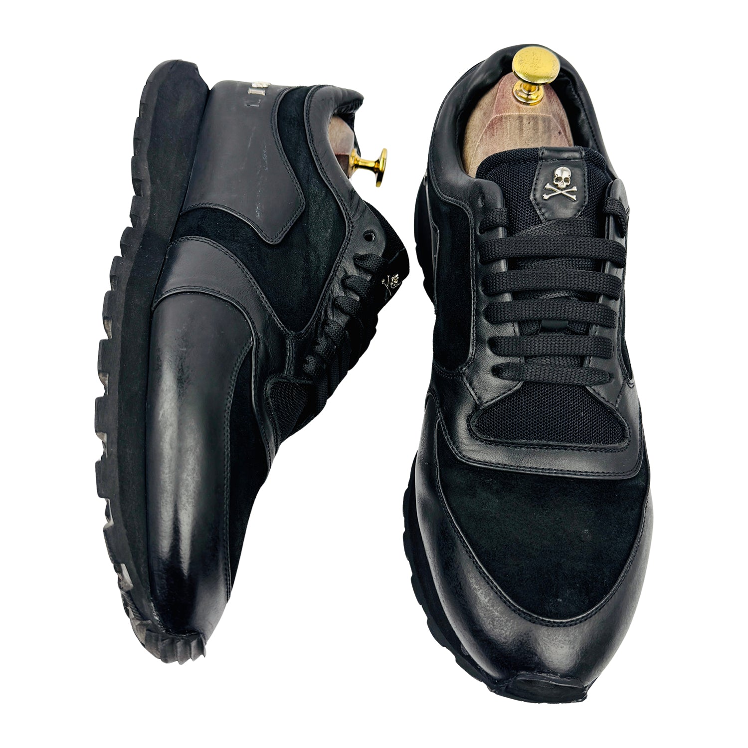 Philipp Plein Black Leather & Suede Sneakers (Size 43/43.5)