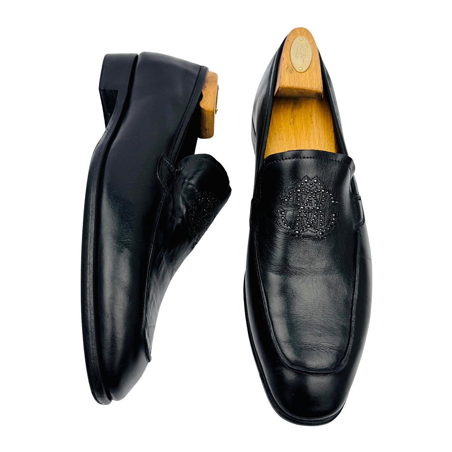 Roberto Cavalli Black Monogram Leather Loafers (Size 43.5)
