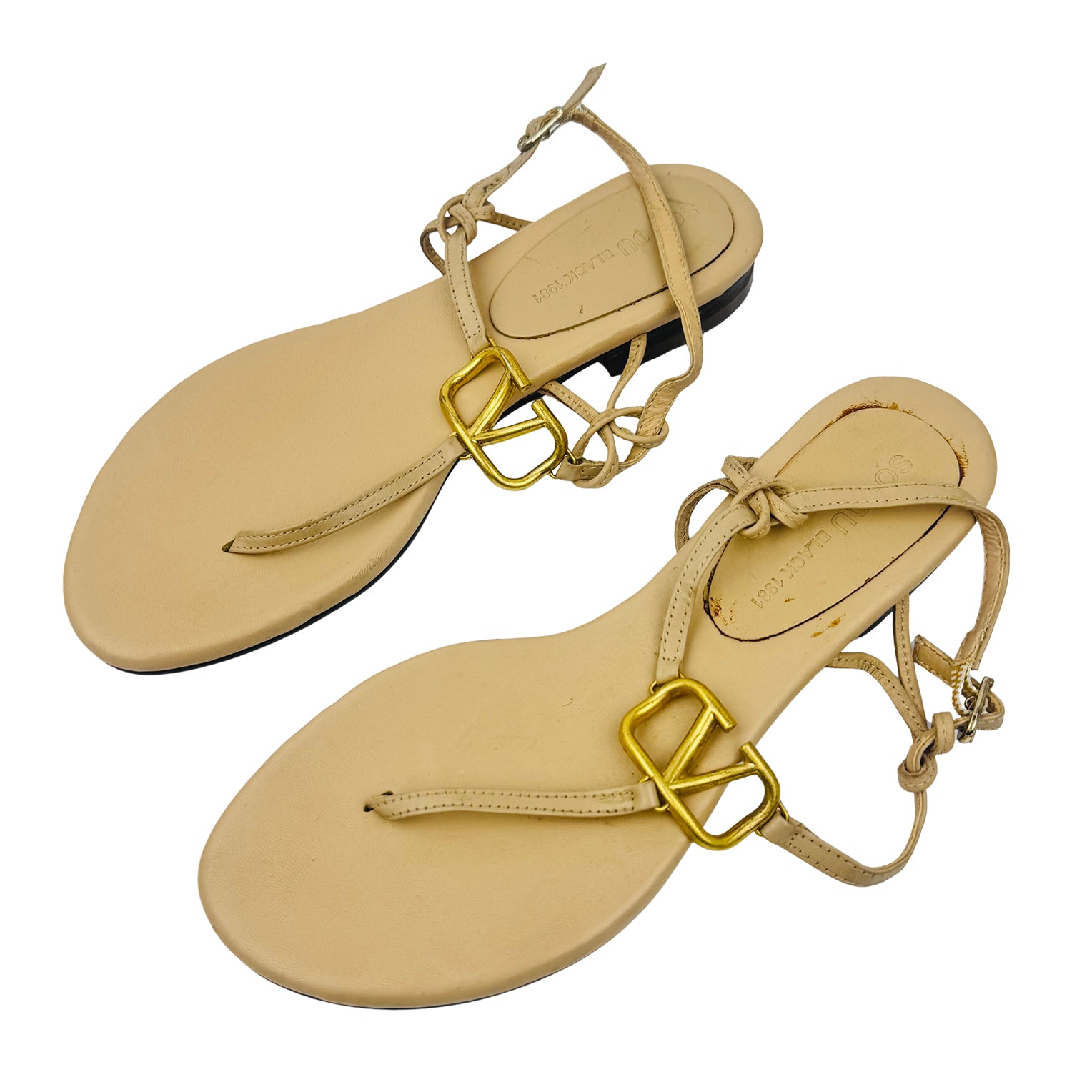 Soyou Black 1981 Beige Leather Sandals (Size 36.5/37)