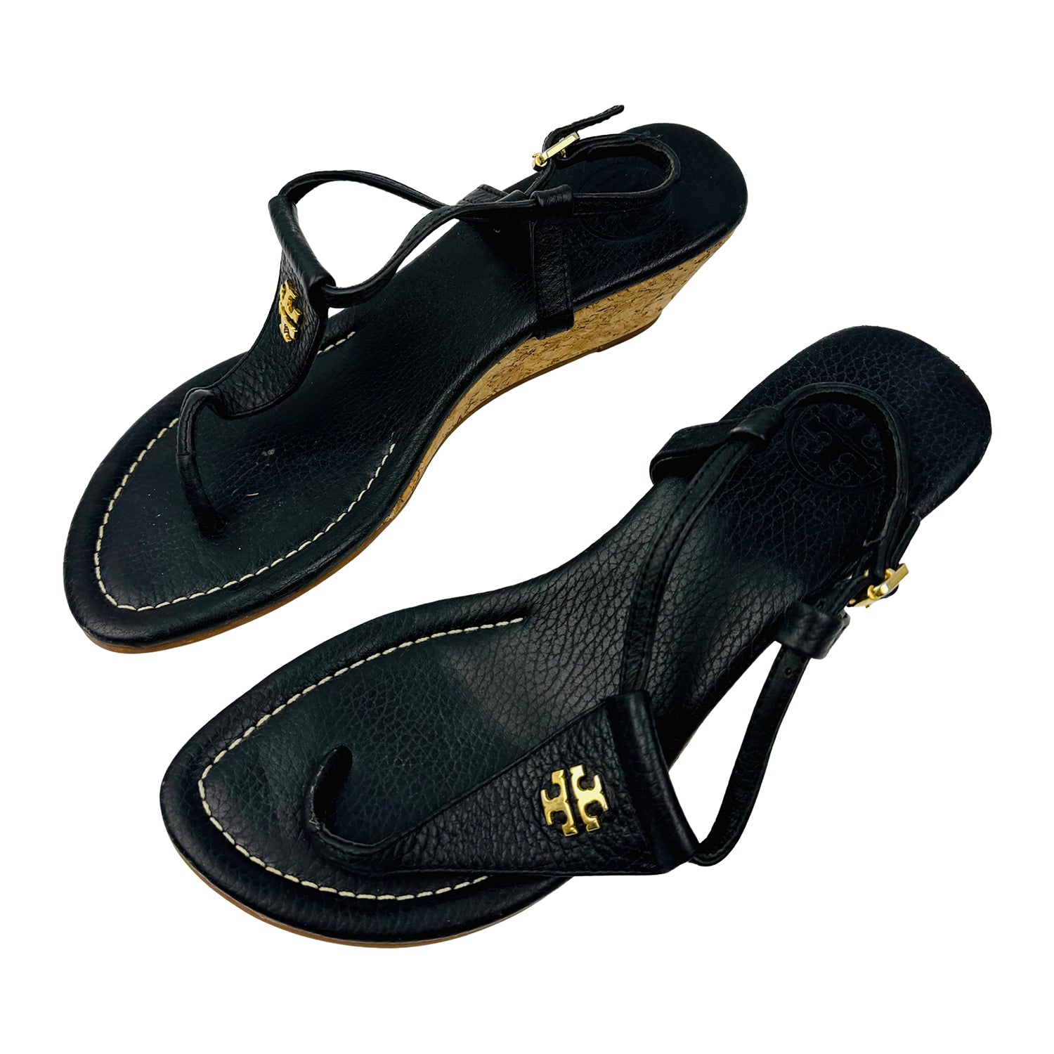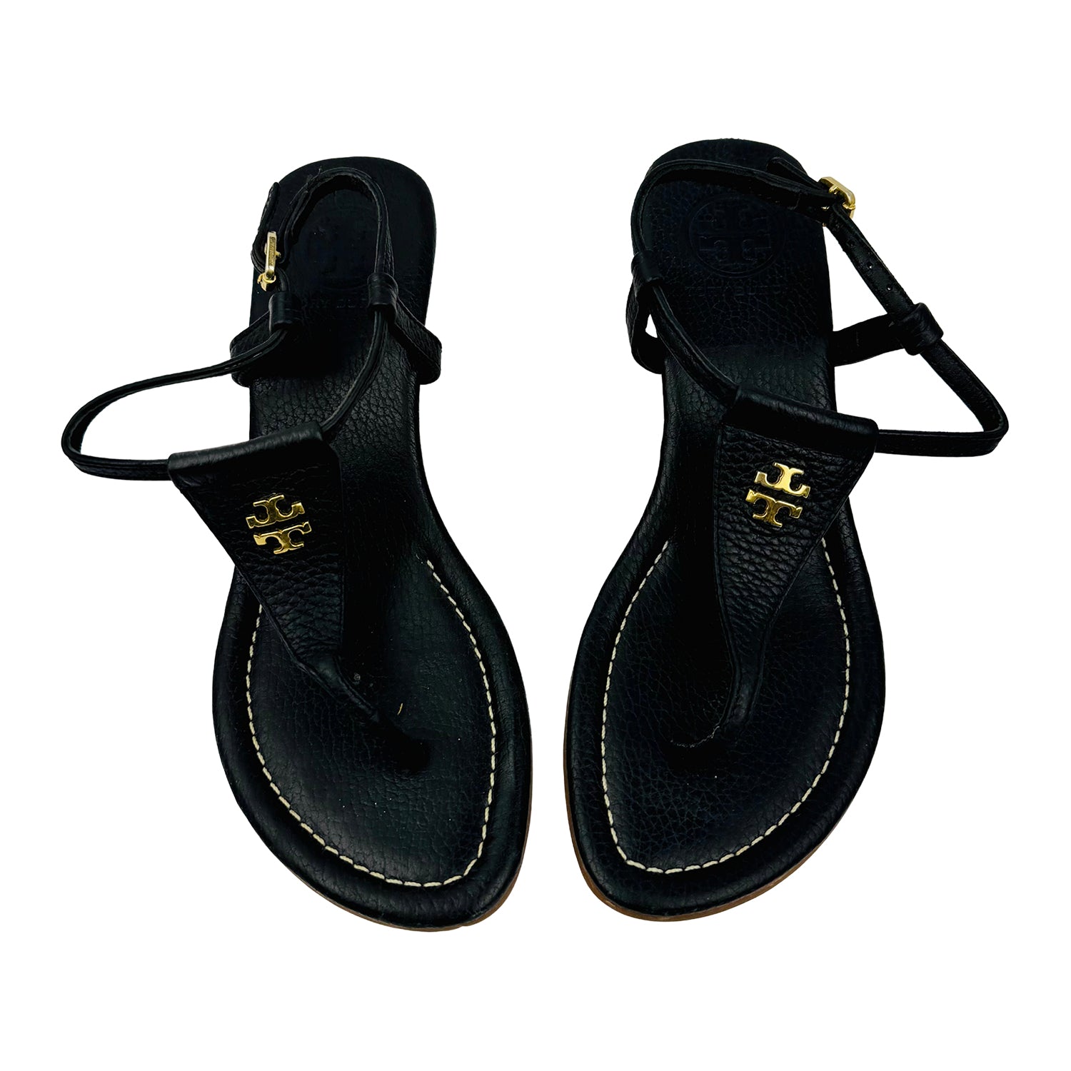 Tory Burch Black Leather Thong Sandals (Size 39)